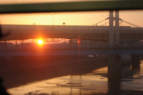 大和川を渡るころに、ちょうど日が沈んでいきます。